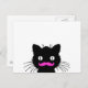 RETRO BLACK CAT FUNNY PINK MUSTACHE POSTCARD