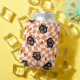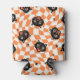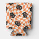 This vintage-inspired pattern features charming black cat faces with large, wide eyes and open mouths, giving them an expression of surprise or excitement. The cats are set against a vibrant, retro orange and cream chequered background with a wavy, distorted effect, evoking a sense of playful movement. Small black stars are scattered throughout the design, adding an extra element of whimsy and nostalgia. The combination of the classic Halloween colours and the bold, stylised cat faces creates a fun, slightly spooky aesthetic that harkens back to mid-century vintage design.