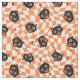 This vintage-inspired pattern features charming black cat faces with large, wide eyes and open mouths, giving them an expression of surprise or excitement. The cats are set against a vibrant, retro orange and cream chequered background with a wavy, distorted effect, evoking a sense of playful movement. Small black stars are scattered throughout the design, adding an extra element of whimsy and nostalgia. The combination of the classic Halloween colours and the bold, stylised cat faces creates a fun, slightly spooky aesthetic that harkens back to mid-century vintage design.
