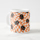 Retro Black Cat Orange Check Pattern Large Coffee Mug