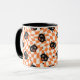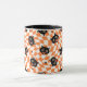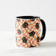 This vintage-inspired pattern features charming black cat faces with large, wide eyes and open mouths, giving them an expression of surprise or excitement. The cats are set against a vibrant, retro orange and cream chequered background with a wavy, distorted effect, evoking a sense of playful movement. Small black stars are scattered throughout the design, adding an extra element of whimsy and nostalgia. The combination of the classic Halloween colours and the bold, stylised cat faces creates a fun, slightly spooky aesthetic that harkens back to mid-century vintage design.