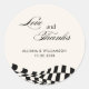 Add a stylish finishing touch to your wedding favours or thank-you notes with our Love and Thanks Wedding Sticker featuring a chic wavy black and cream chequered pattern. This modern yet timeless design perfectly complements any retro or old-money-inspired wedding theme. The elegant typography and unique chequered background create a memorable keepsake for your guests, expressing gratitude in style.