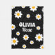 Retro Black Daisy 70's Hippie Custom Name Fleece Blanket
