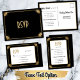 The front of this simple, elegant art deco floral save the date postcard features vintage script and sans serif typography in gold text on a black background, surrounded by a minimal faux gold foil border with with retro flowers in the corners, combining sophisticated glamour with minimalism. The back features a black background with a gold-edged white area in the centre, where there is customisable text for your names and return address, a message, and a guest address if you wish to personalise each card specially (or you can leave it blank to fill out the guests' addresses by hand). You can customise the text by editing the product template to personalise this card for your own wedding.