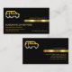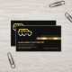 Card features an all black cover that is accentuated by a faux gold stripe near the centre of the card. Just above this is the business name with a gold auto car logo you can use on the left. Below this logo lies your prestigious name, the job title and its contact details. A slogan to advertise your services is available at the lower right corner.