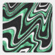 Retro Black Green Wavy Lines Modern Design Square Sticker