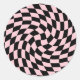 Retro Black Pink Pastel Warped Checks Chequered Classic Round Sticker
