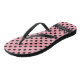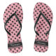 Flip flops with a retro polka dot pattern in black on a pink custom background colour. Personalise them with a name, monogram or any text and change the font if desired. These cute sandals make a fun summertime gift for her!