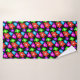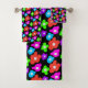 Retro Black Rainbow Colourful Flowers Pattern Bath Towel Set