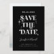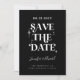 Retro save the date card featuring a blocky font that says "save the date" with mid century modern stars around. The background colour is black. You can add a photo on the back.