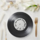 A classic black vinyl LP record with a blank label and shiny gleam for a party.
