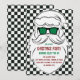Retro Black White Checkered Santa Claus Christmas Invitation.