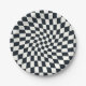 Retro Black White Checks Warped Chequerboard Paper Plate