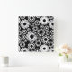 Retro black white flowers Wall Clock