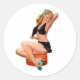 Retro Blonde pin-up girl in black mini skirt Classic Round Sticker