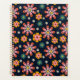 Bright, cheerful, and effortlessly stylish, this floral notebook cover is designed to bring a touch of joy to your everyday writing. Featuring a seamless pattern of retro-inspired blooms in warm corals, soft pinks, sunny yellows, and fresh greens set against a deep navy background, it strikes the perfect balance between playful and timeless.