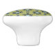 Retro Blue & Black Daisies on Green Floral Pattern Ceramic Knob