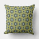 Retro Blue & Black Daisies on Green Floral Pattern Cushion