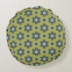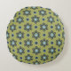 Retro Blue & Black Daisies on Green Floral Pattern Round Cushion