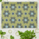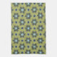 Retro Blue & Black Daisies on Green Floral Pattern Tea Towel