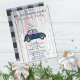 Invite friends and family to get together for the holidays with this cute retro Christmas Party invitation. This Xmas party invite features a rustic light grey wood background with a cute blue car topped with a pink Christmas tree and presents. The back of the Christmas card has a blue plaid pattern. Personalise with all of your party info.