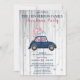 Retro Blue Car Pink Xmas Tree Christmas Party Invitation