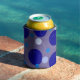 Retro Blue Circles & Ovals Royal Periwinkle Aqua Can Cooler