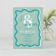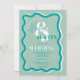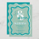 A cool bold names wedding invitation with custom names with a hand written calligraphy and serif font, 2 names , two styles with Retro blue curve squiggle wavy wedding photo. All the text, names and background colours are customisable for you to mix and match your wedding suite.