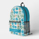 This retro and cute backpack features a white background with blue floral pattern. Personalise it for your needs. You can find matching products at my store.