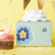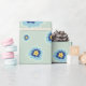 A bright retro-style floral design in calming blue tones. Playful and cheerful.