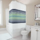 Fun retro/mod navy blue, teal, and green striped shower curtain gives that fun 70's/80's feel to your bathroom. Simple and minimalist, it's a bright yet soothing pop of colour that blends well with many design styles, from retro to transitional to nautical.