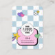 Trendy Retro Jewellery Display Cards with groovy font and pastel blue chequered background. This modern earrings and necklaces holder card design has two hole and necklace slits - please note these are markers only and are not pre-punched, you can keep / remove the markers that you need. Add your logo and business details on the back and make your custom jewellery display cards. Featuring retro design and nostalgic girly pink and blue colours, perfect for your artisan jewellery boutique!