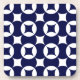 Serve you drinks on these cool Hard Plastic coasters with cork back with Japanese interlocking circles in Delft Blue.