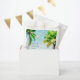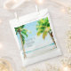 Looking for personalised wedding favour bags? Set the tone for your dream beach wedding with these stunning custom party favour bags featuring a breathtaking digital watercolor of a serene coastal scene. Our Retro Blue Ocean Beach Palm Trees Tropical Wedding Favour Bag captures the essence of paradise, showcasing lush palm trees swaying against a beautiful blue sky and ocean waves gently meeting the shore. Perfect for beach, coastal wedding, nautical wedding, or destination weddings, these nautical favour bags beautifully convey. Whether planning a seaside ceremony or a tropical getaway celebration, this design invites your guests to experience the magic of your love story in an idyllic setting. Fully customisable, these custom nautical party favour bags ensures your big day starts with unforgettable style.
