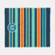 Retro Blue Orange Custom Colour Striped Monogram Fleece Blanket