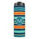 Retro Blue Orange Custom Colour Striped Monogram Thermal Tumbler