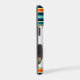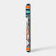 Striped monogram photo case using a classic blue and orange retro color palette. The color of the stripes and monogrammed circle can be changed.