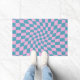 Retro Blue Pink Warped Chequerboard Chequered Doormat