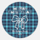 Retro Blue Plaid Whimsical Christmas Classic Round Sticker