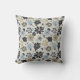 Retro Blue Tan Outline Patterned Flowers Cushion