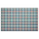 Retro blue teal coral houndstooth plaid pattern fabric