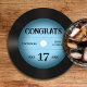 Vignette blue retro vinyl record wedding congratulations coasters. Personalise it by adding your wedding details. Great for a vintage 1940s look and feel.
