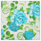 Retro Blue & White Roses Floral Pattern Fabric