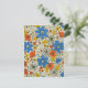 These note cards feature a retro floral pattern that features flowers and leaves in shades of orange, blue and yellow.