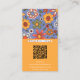 Retro Blue Yellow QR Code Groovy Floral Trendy Business Card