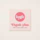 Square business thank you card featuring the text "Thank you" in a retro style font. Pink (or custom colour) text on a light blush pink background. Upload your logo on the front and add custom text on the back. You can change colours, move and resize elements with the design tool.