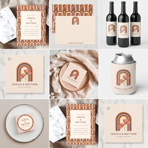 Retro Rainbow Floral Arch Wedding StationeryDesigned by Opal Ellery