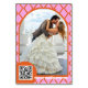 Our minimal, bold retro style wedding table number is perfect for the trendy couple who loves standing out and making a bold statement. Our design features a bold bright pink and orange colour combo. A simple abstract boho arch shape creates a bold look with the table number displayed boldly in white large font. Customise with a fun fact about the couple on each of the table numbers. The reverse side features a full photo layout with a customisable QR code to link guests to a website etc