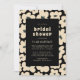 Groovy ivory white flowers pop on a black background. Bridal Shower is written in a trendy font. Colourful and fun design for any time of year. This item is part of the Retro Boho Floral Collection. It contains many items for your invitation suite and party supplies.