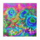 Retro boho blue purple pink flowers tile